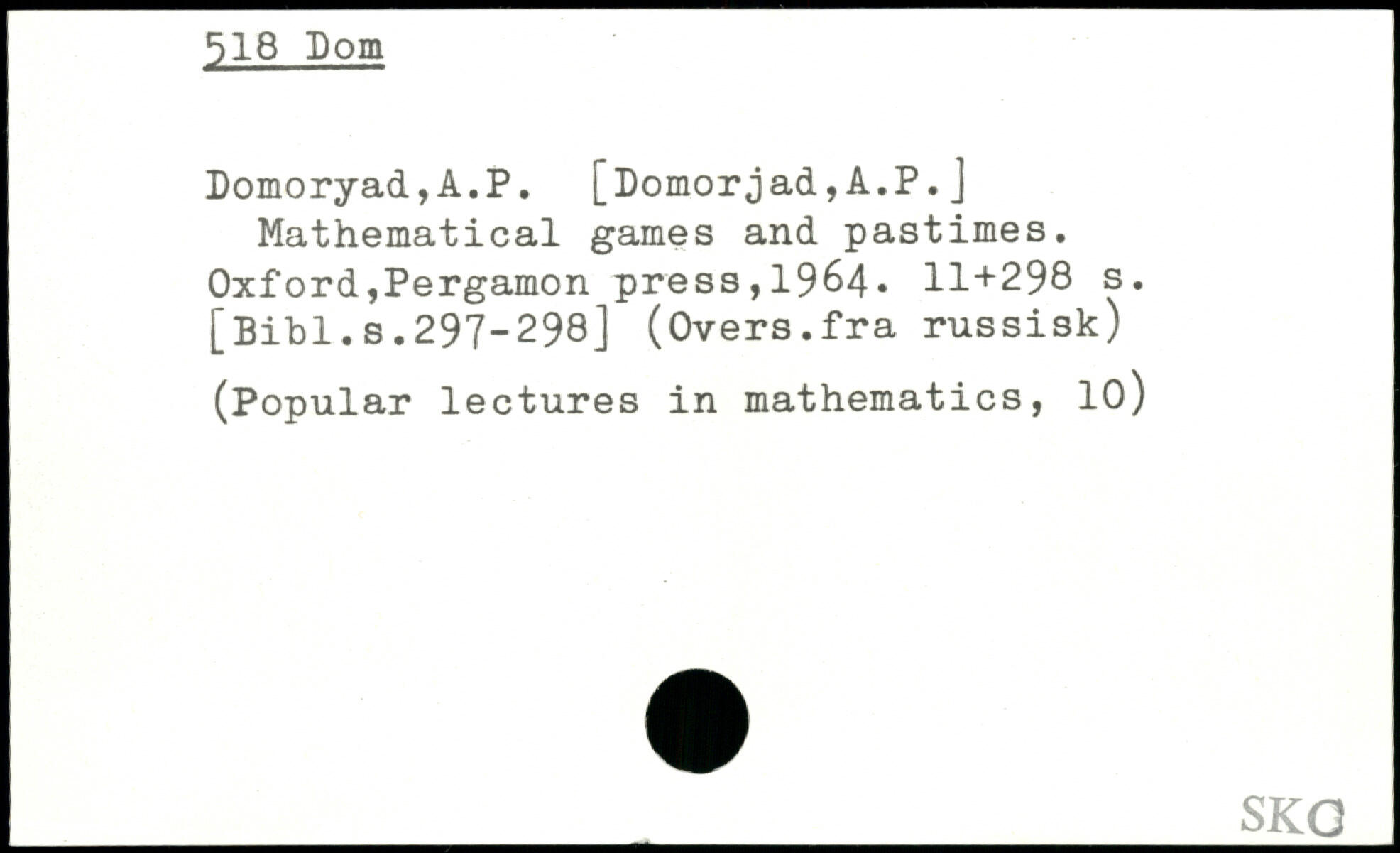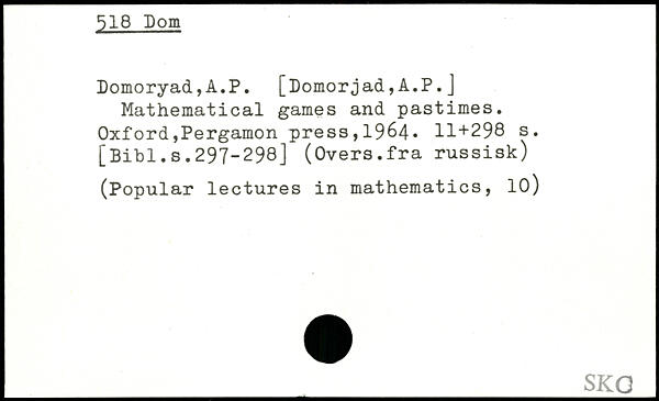 Domoryad,A.P. [Domorjad,A.P. ] Mathematical games and pastimes.