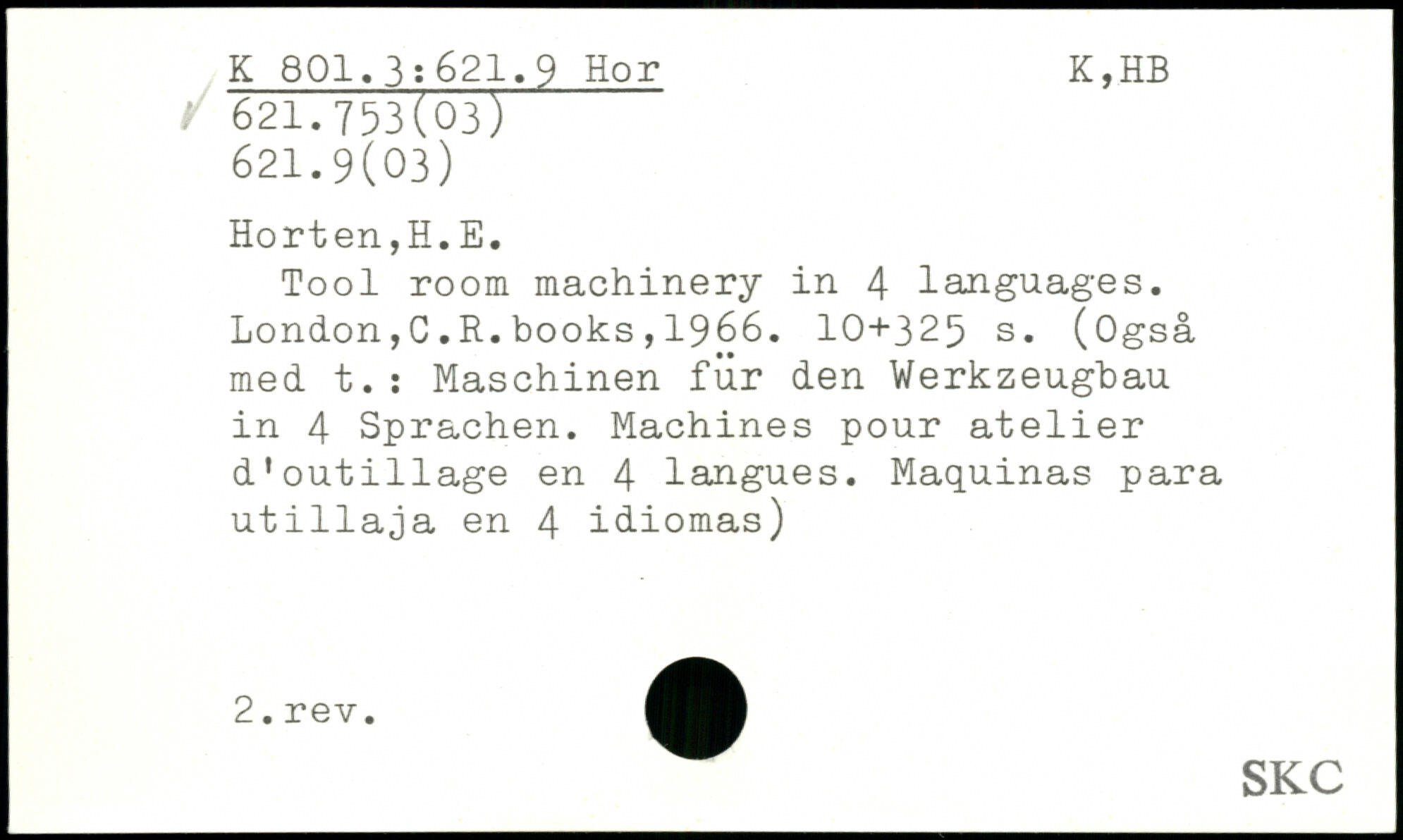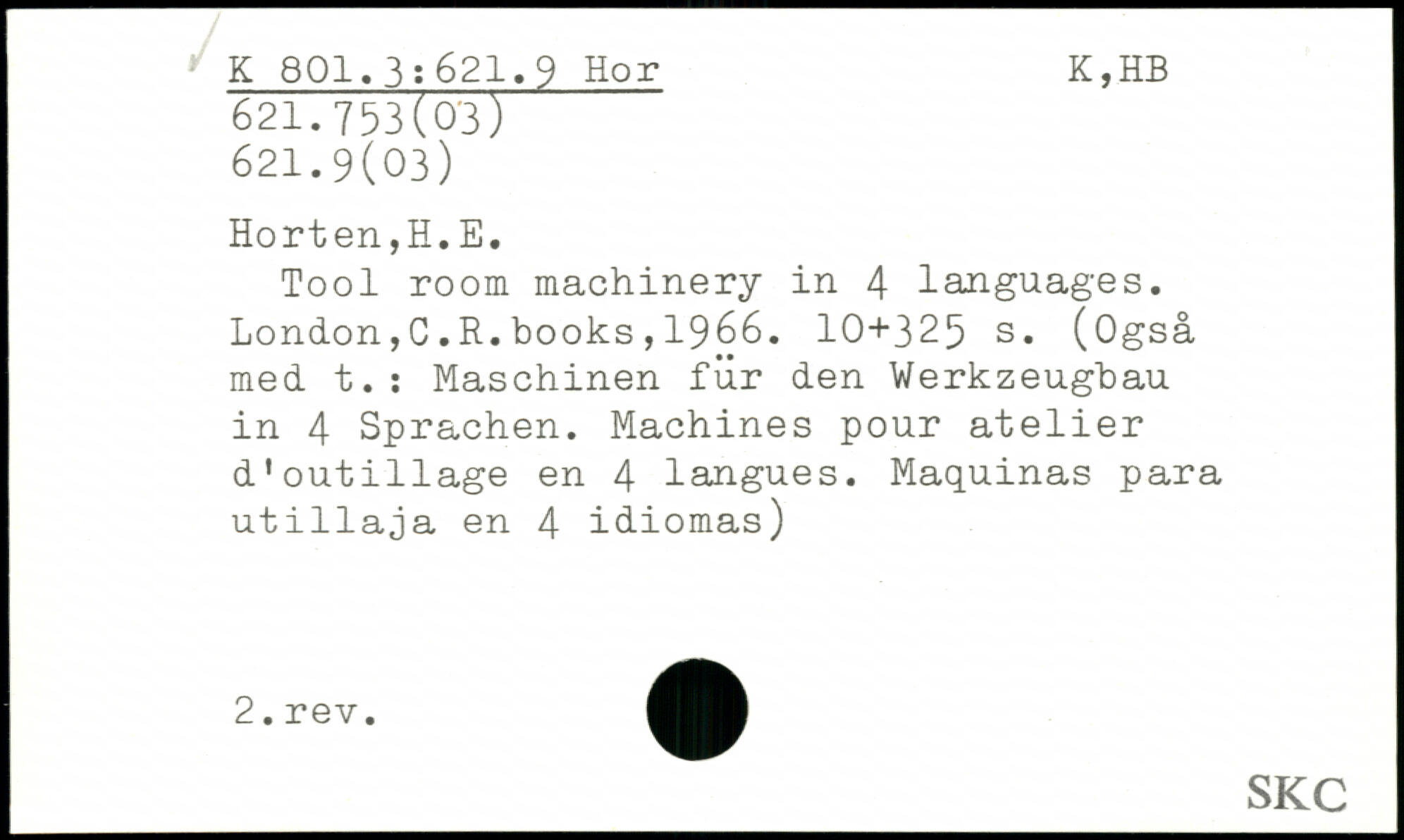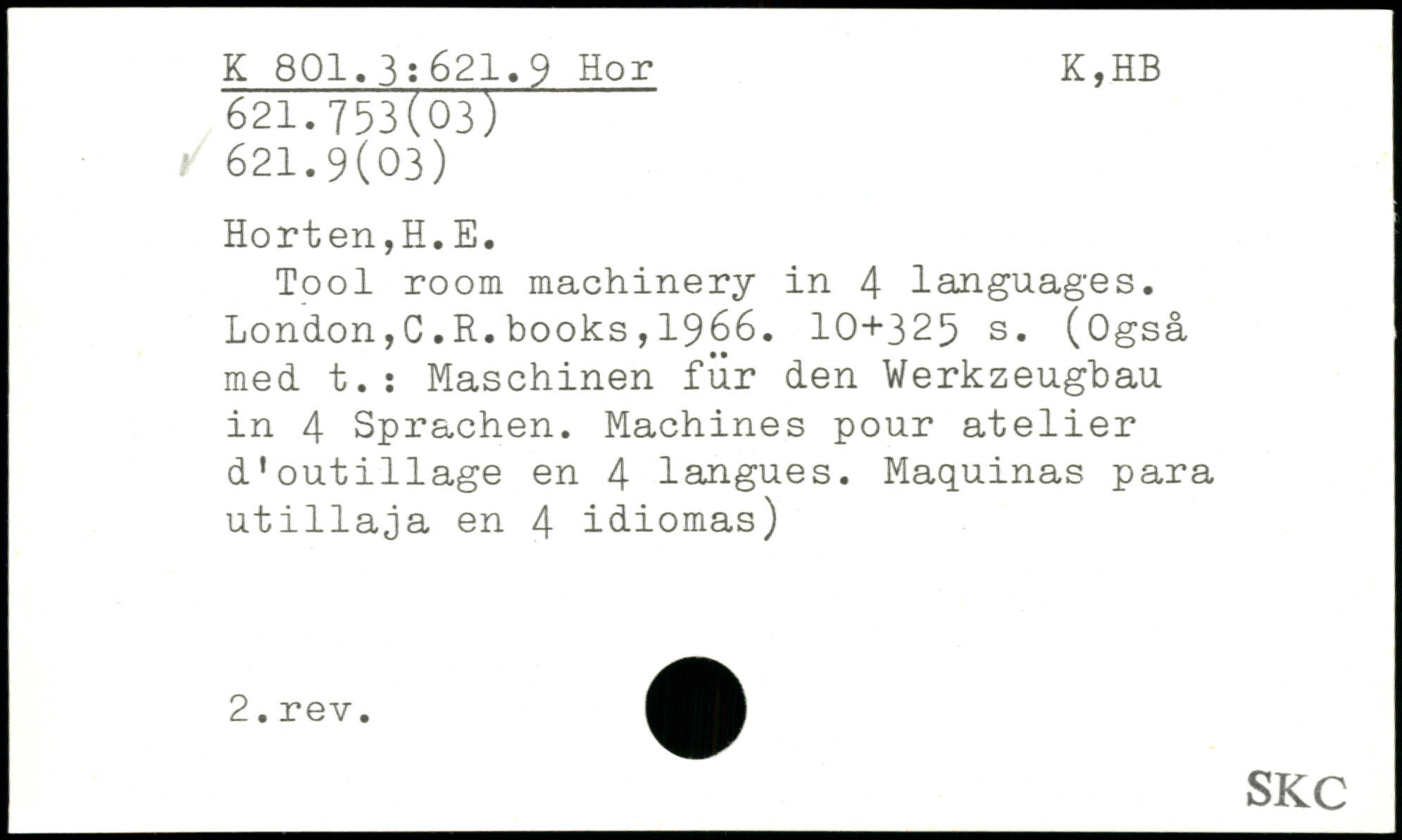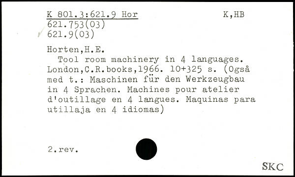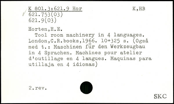 UDK: 621.9 Hor, 621.753(03), 621.9(03)