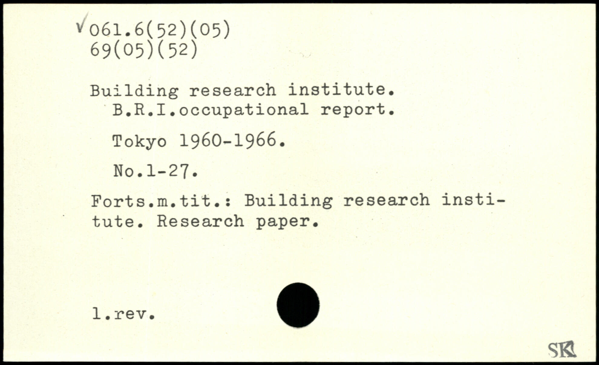 Building research institute. B.R.I.occupational report.