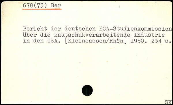 Bericht der deutschen ECA-Studienkommission über die kautschukverarbeitende Industrie in den USA. [Kleinsassen/Rhön] 1950.