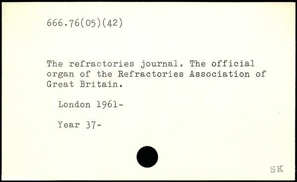 The refractories journal. The official organ of the Refractories Association of Great Britain