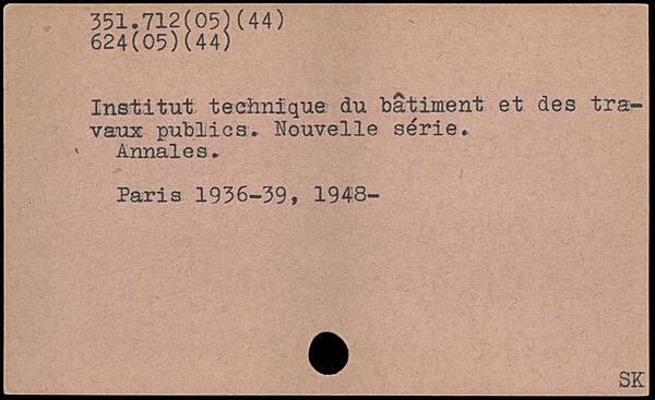 Institut technique du bâtiment et des tra-vaux publics. Nouvelle série. ' Annales.