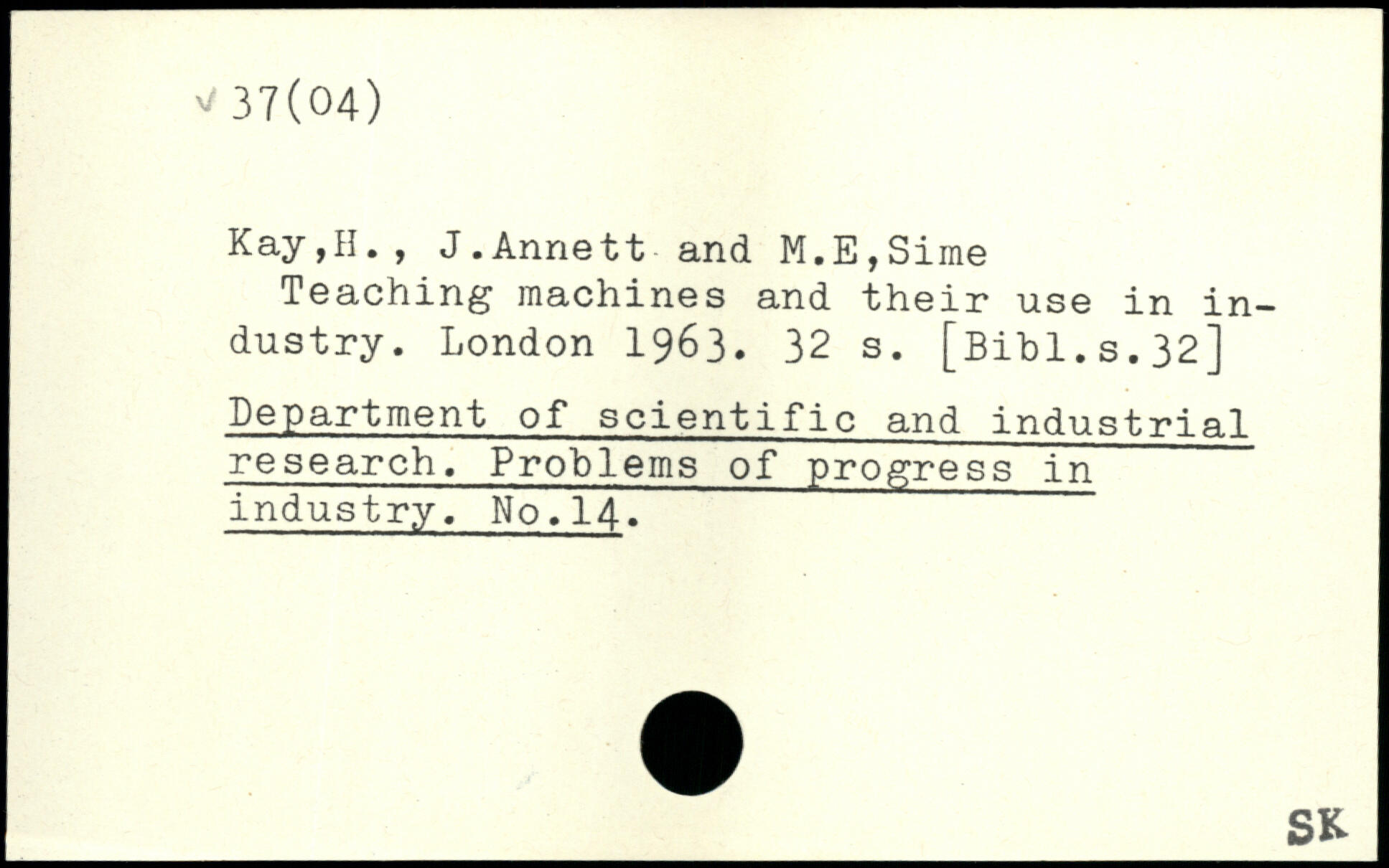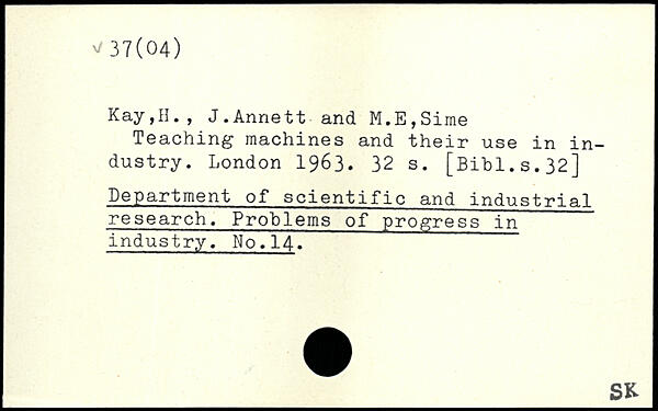 Kay,H., J.Annett and M.E,Siine Teaching machines and their use in industry.