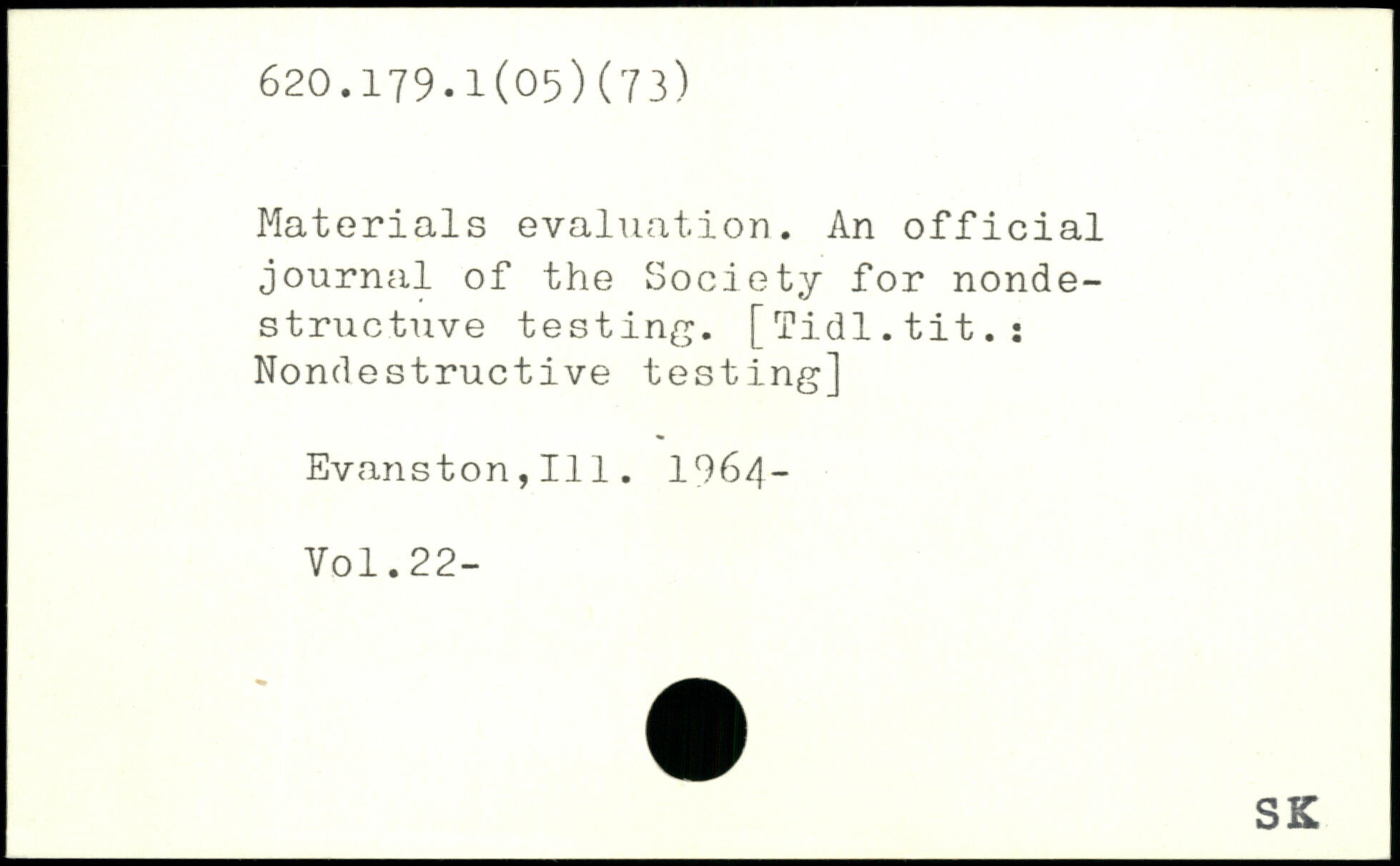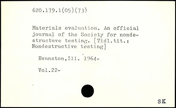 Materials evaluation. An official journal of the Society for nondestructive testing. [Tidl.tit.: Nondestructive testing] Evanston , II1. 196/]-