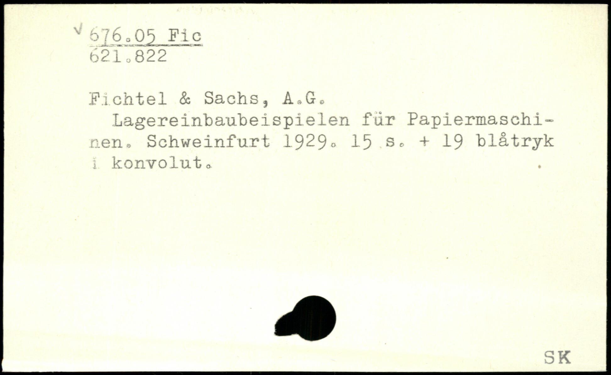 F.ichtel & Sachs, AaG,, Lagereinbaubeispielen für Papiermaschinen,, Schweinfurt 1929.