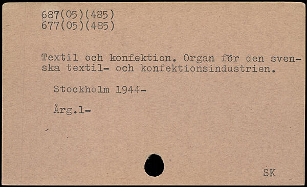 Textil och konfektion. Organ f'ör den svenska textil- och konfektionsindustrien.