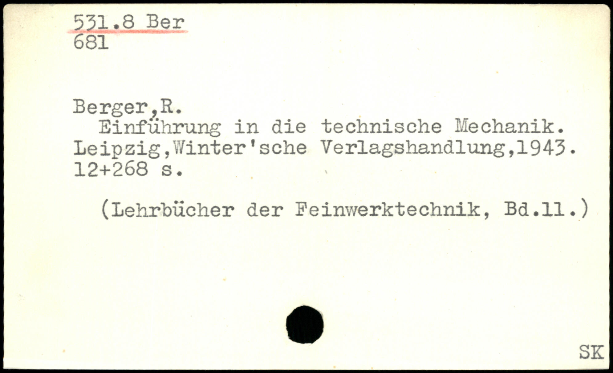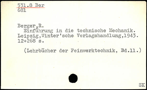 Einführung in die technische Mechanik. Leinzig,Winter'sehe Verlagshandlung,1943.