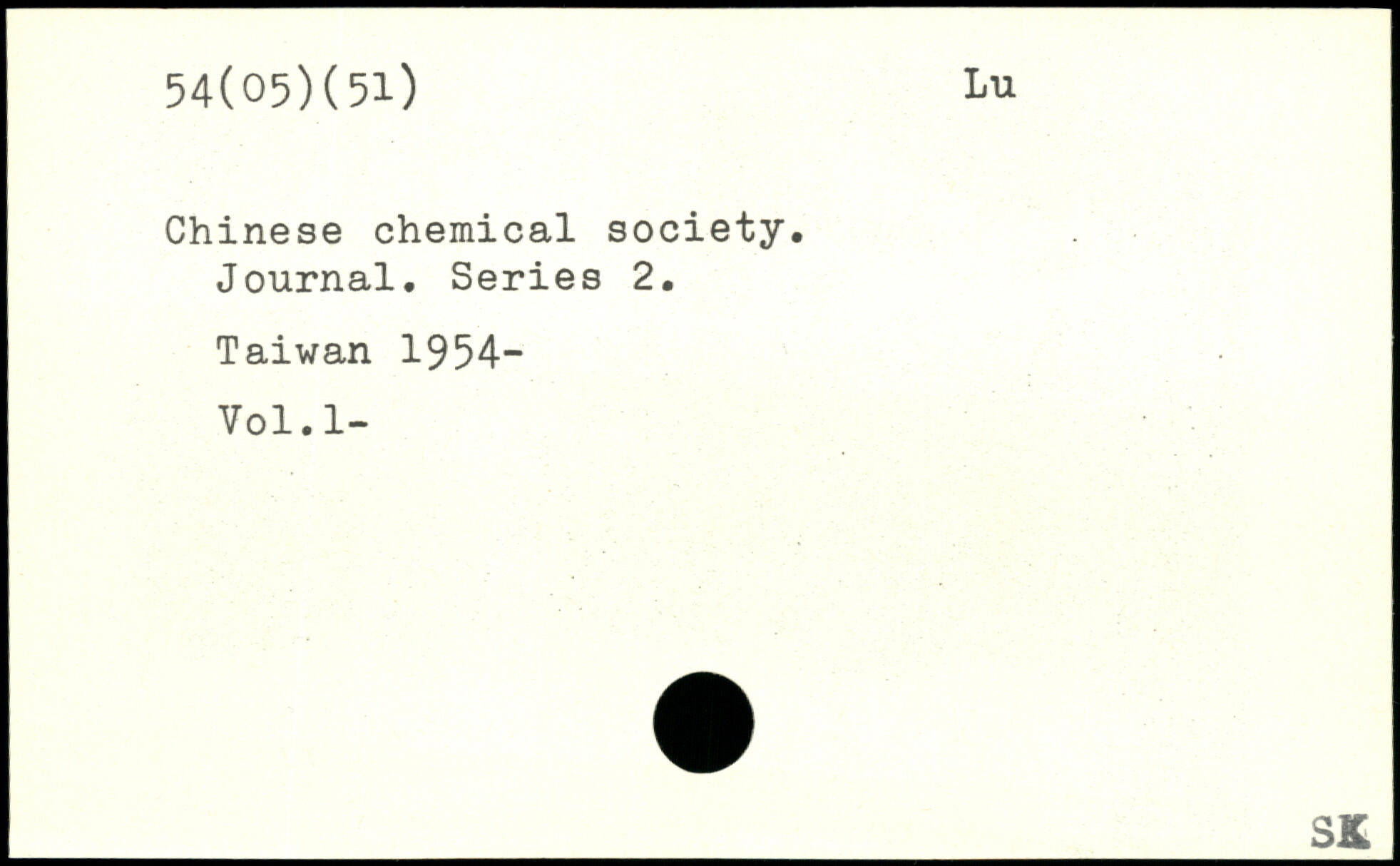 Chinese chemical society. Journal, Series 2, Taiwan 1954- Vol.l-