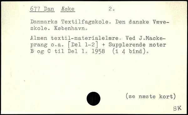 Danmarks Textilfagskole => Den danske Væveskole. København, Almen textil-materialelæreo Ved J,Macke-prang o^a, [Del 1-2]