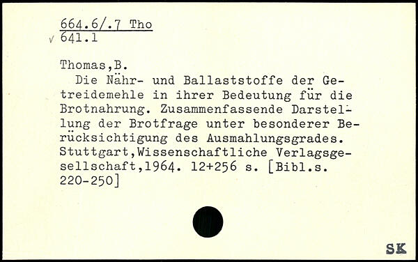Die Nähr- und Ballaststoffe der Getreidemehle in ihrer Bedeutung für die Brotnahrung. Zusammenfassende Darstellung der Brotfrage unter besonderer Berücksichtigung des Ausmahlungsgrades. Stuttgart Wissenschaftliche Verlagsgesellschaf t,1964.