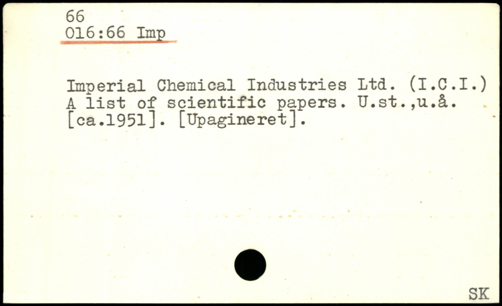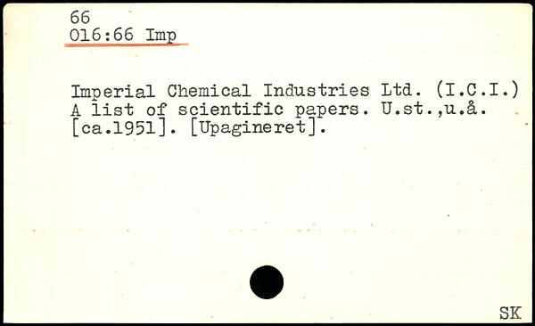 Imperial Chemical Industries Ltd. (I.C.I.) A list of scientific papers. U.st.,u.§,. [ca.1951]. [Upagineret].