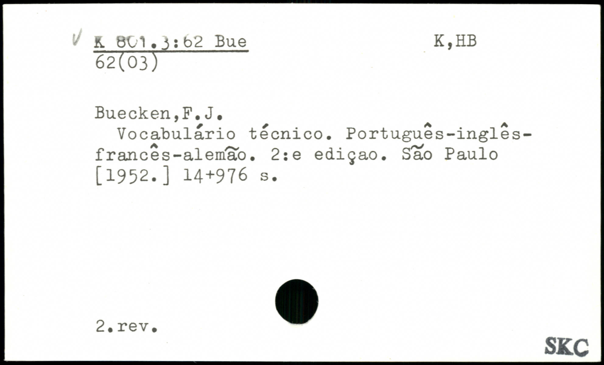 Vocabulario técnico. Portugues-ingles-frances-alemao. 2:e ediçao. Sao Paulo