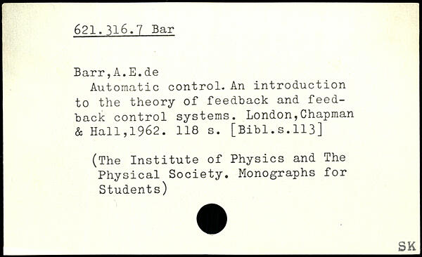 Automatic control. An introduction to the theory of feedback and feedback control systems.