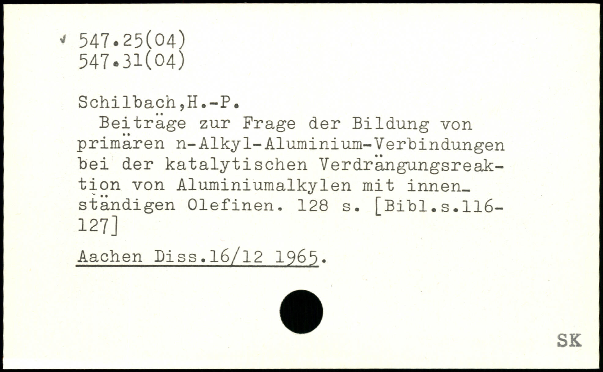 Beitrage zur Frage der Bildung von primären n-Alkyl-Aluminium-Verbindungen bei der katalytischen Verdrängungsreaktion von Aluminiumalkylen mit innen_ ständigen Olefinen.