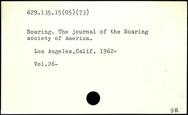 Soaring. The journal of the Soaring society of America. Los Angeles,Calif. 1962-