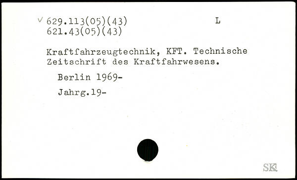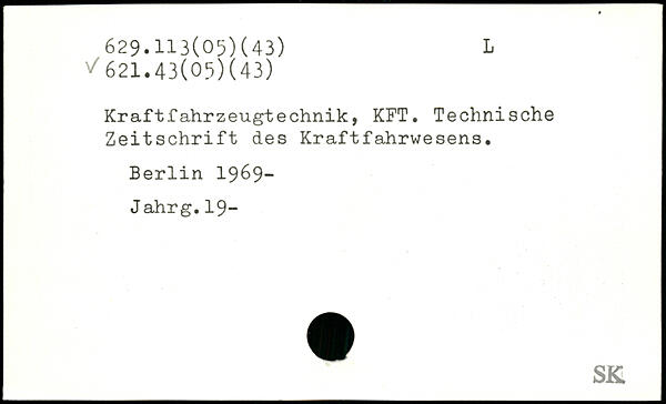 Kraftfahrzeugtechnik, KFT. Technische Zeitschrift des Kraftfahrwesens.