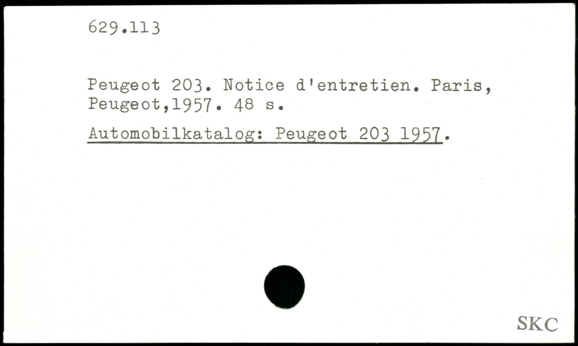 Peugeot 203. Notice d'entretien.