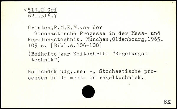 Orinten, P.M.E.M.van der Stochastische Prozesse in der Mess- und Regelungstechnik.