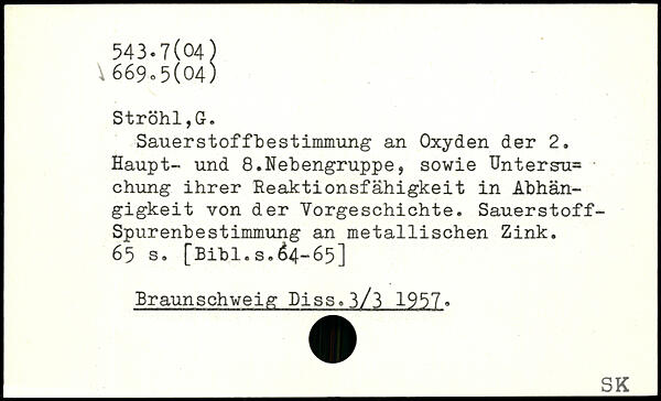 SauerStoffbestimmung an Oxyden der 2. Haupt- und 8.Nebengruppe, sowie Untersu. chung ihrer Reaktionsfähigkeit in Abhängigkeit von der Vorgeschichte. Sauerstoff-SpurenbeStimmung an metallischen Zink.
