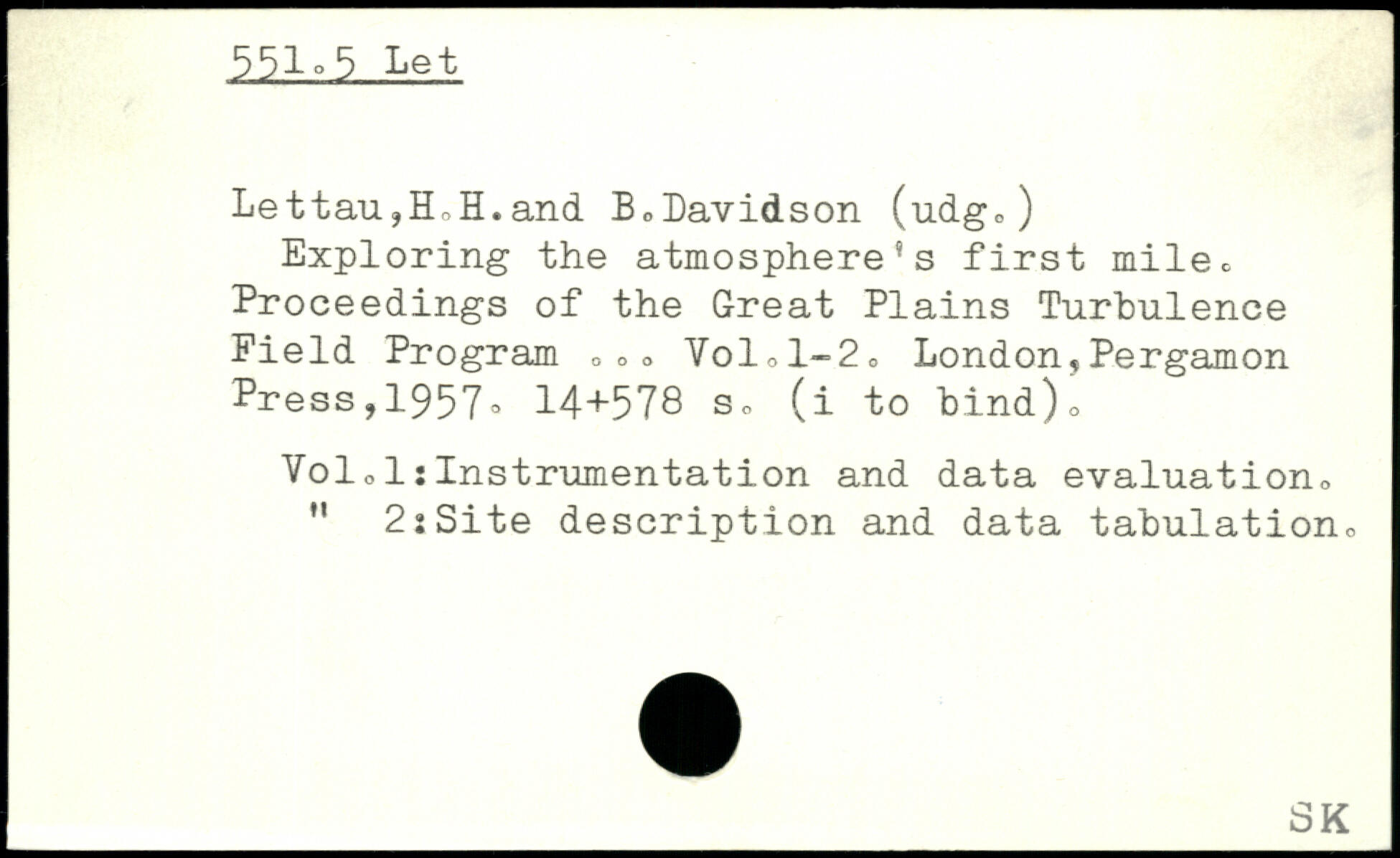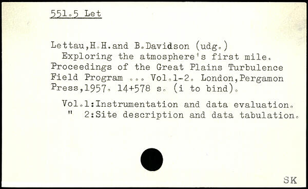 Lettau,H,H.and BoDavidson (udg,) Exploring the atmosphere’s first mileo Proceedings of the Great Plains Turbulence Field Program 0 0 0 Yolo 1-2