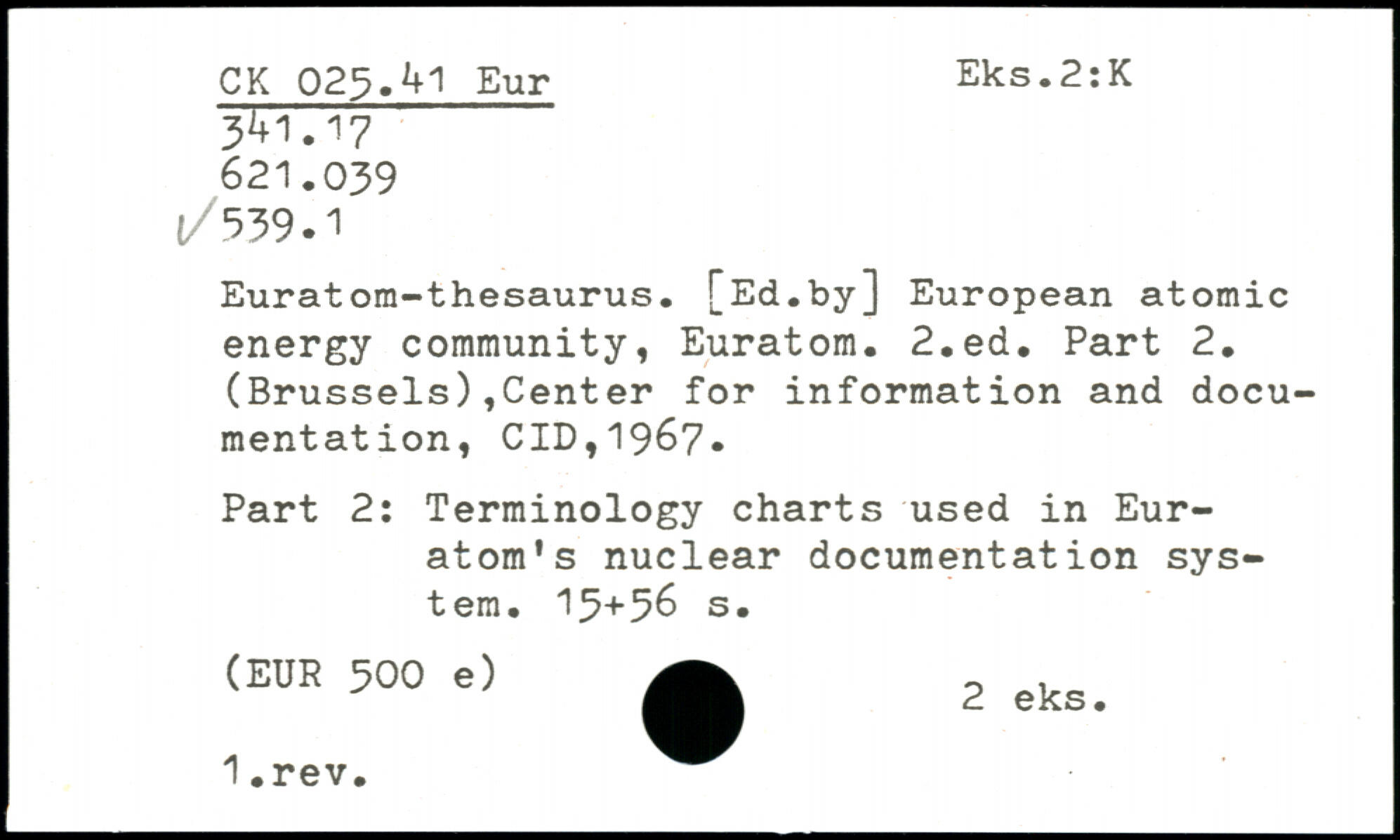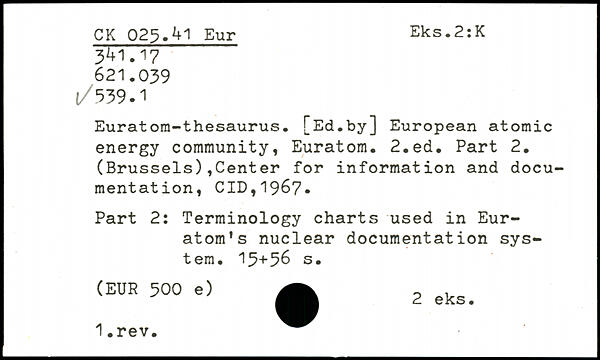 Euratom-thésaurus. [Ed.by] European atomic energy community, Euratom.