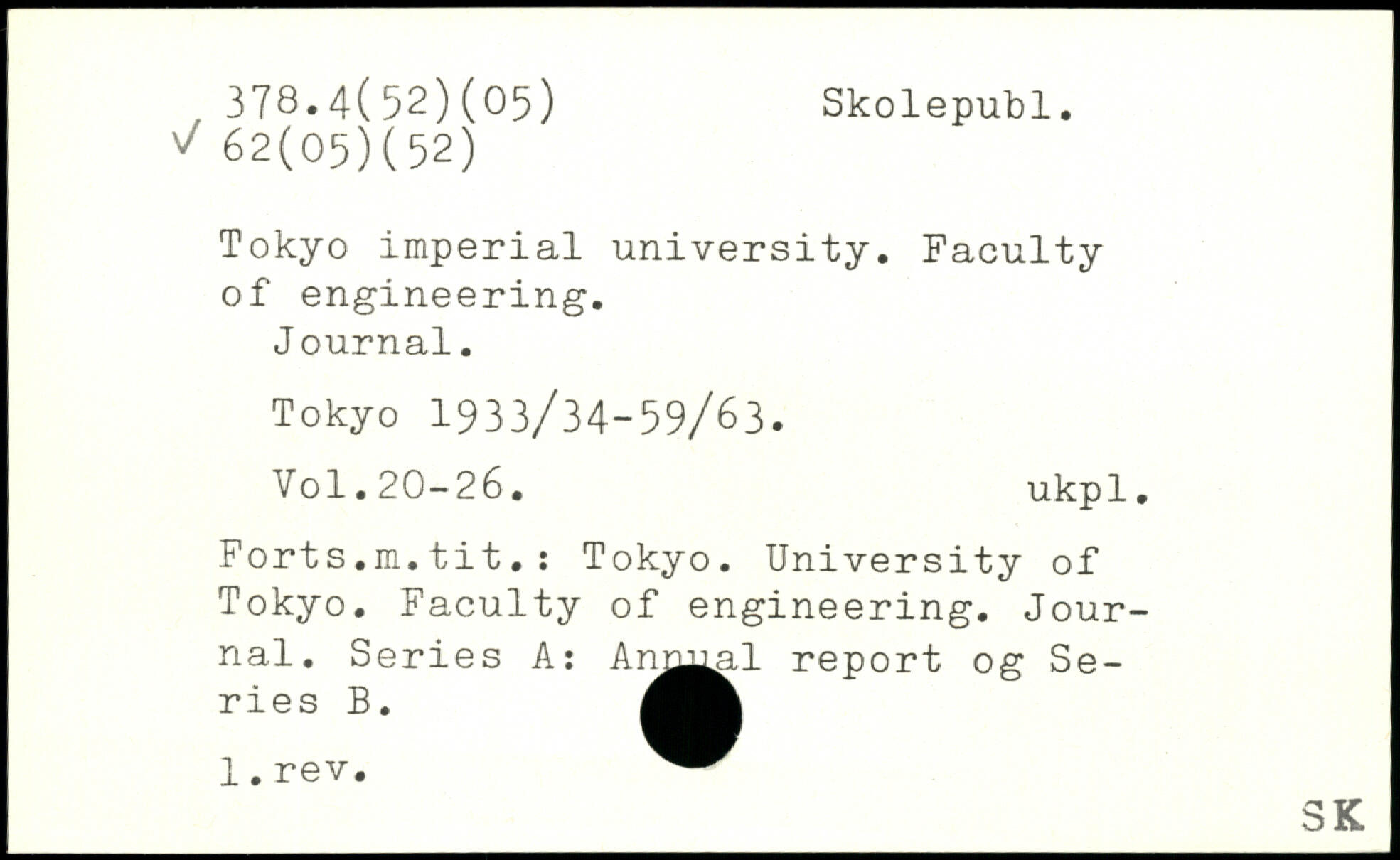 Tokyo imperial university. Faculty of engineering. J ournal.