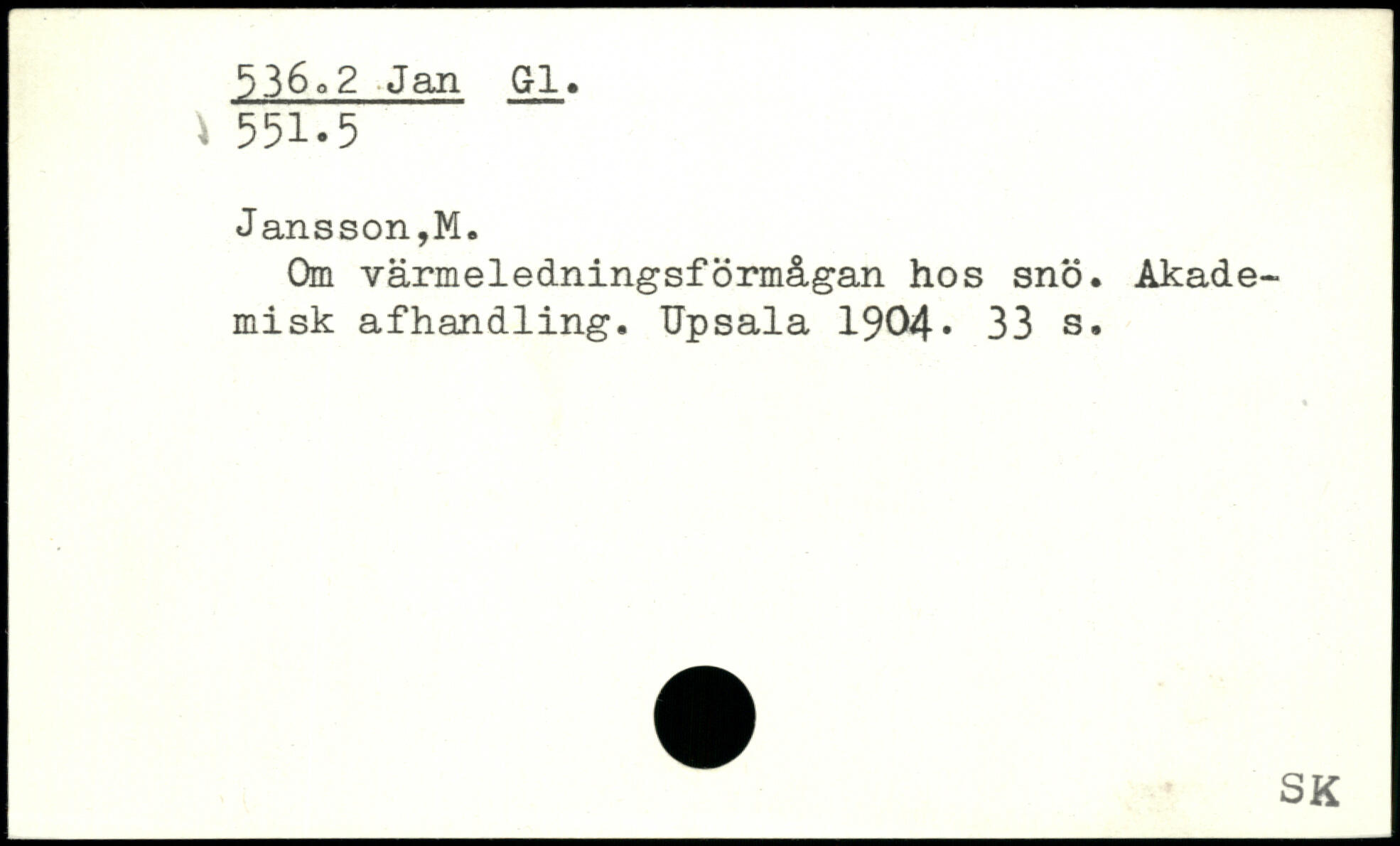 Om vårmeledningsformågan hos sno. Akademisk afhandling. Upsala 1904.