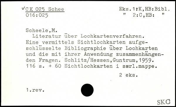 UDK: 025 Schee, 1, 016:025, 2