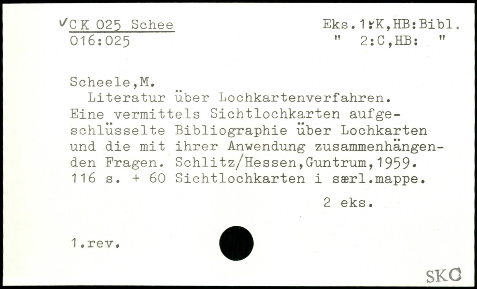 Literatur über Lochkartenverfahren. Eine vermittels Sichtlochkarten aufgeschlüsselte Bibliographie über Lochkarten und die mit ihrer Anwendung zusammenhängenden Fragen.