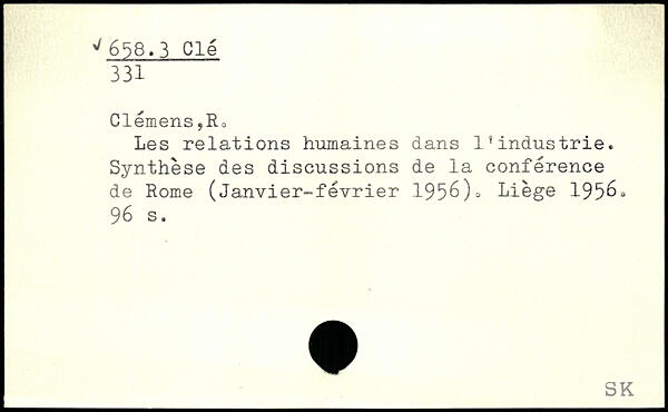 Les relations humaines dans 1.industrie. Synthèse des discussions de la conférence de Rome (Janvier-février 1956)=. Liège 1956.