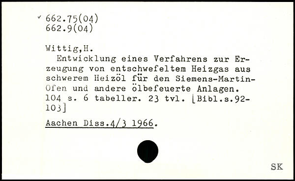 Entwicklung eines Verfahrens zur Erzeugung von entschwefeitern Heizgas aus schwerem Heizöl für den Siemens-Martin-Ofen und andere ölbefeuerte Anlagen.
