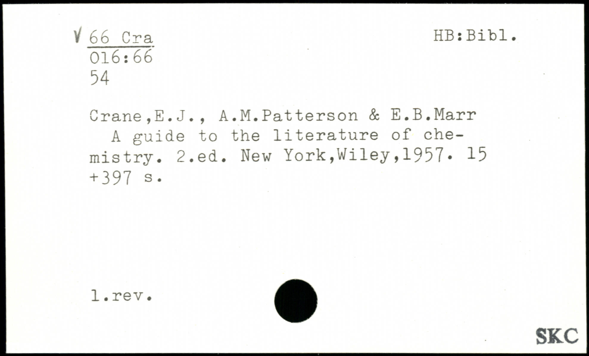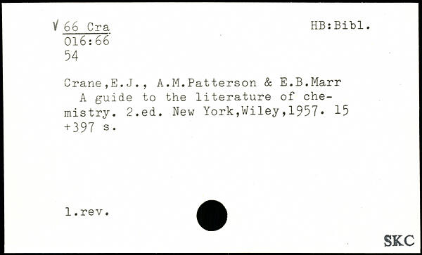 Crane,E.J., A.M.Patterson & E.B.Marr A guide to the literature of chemistry.