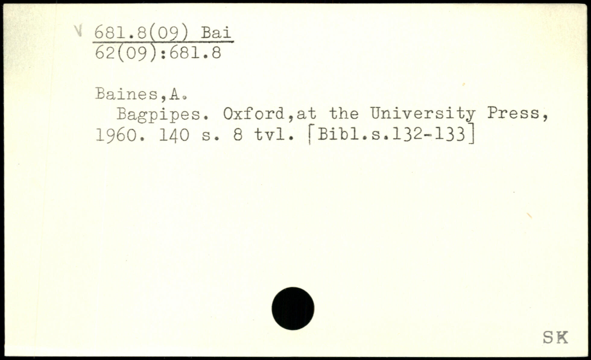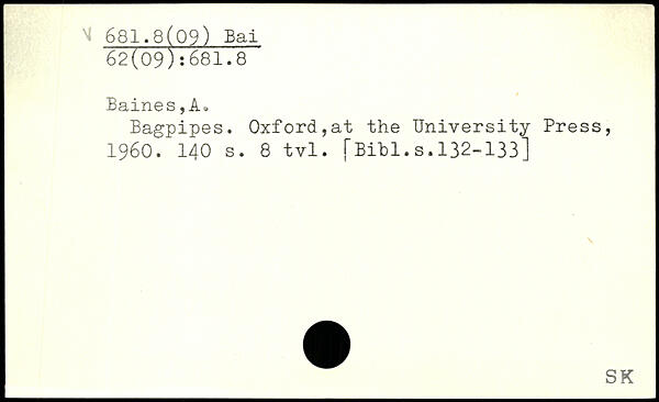Bagpipes. Oxford,at the University Press, 1960.