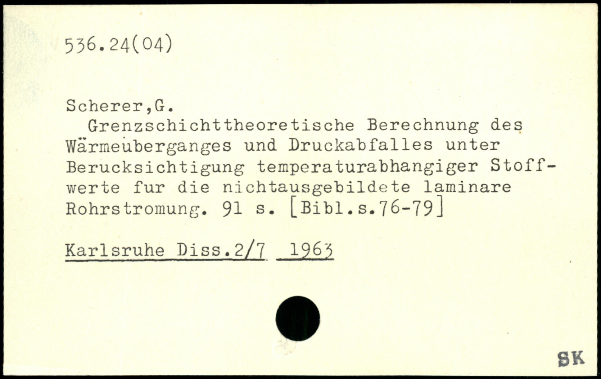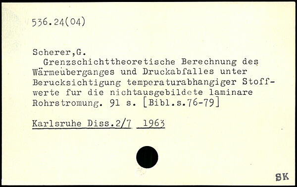 Grenzschichttheoretische Berechnung des Wärmeüberganges und Druckabfalles unter Berücksichtigung temperaturabhangiger Stoffwerte für die nichtausgebildete laminare Rohrstromung.