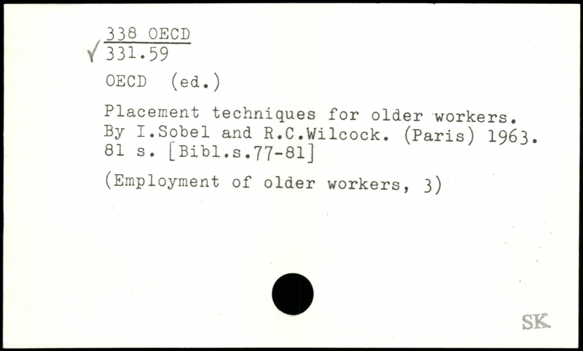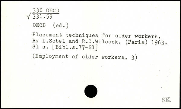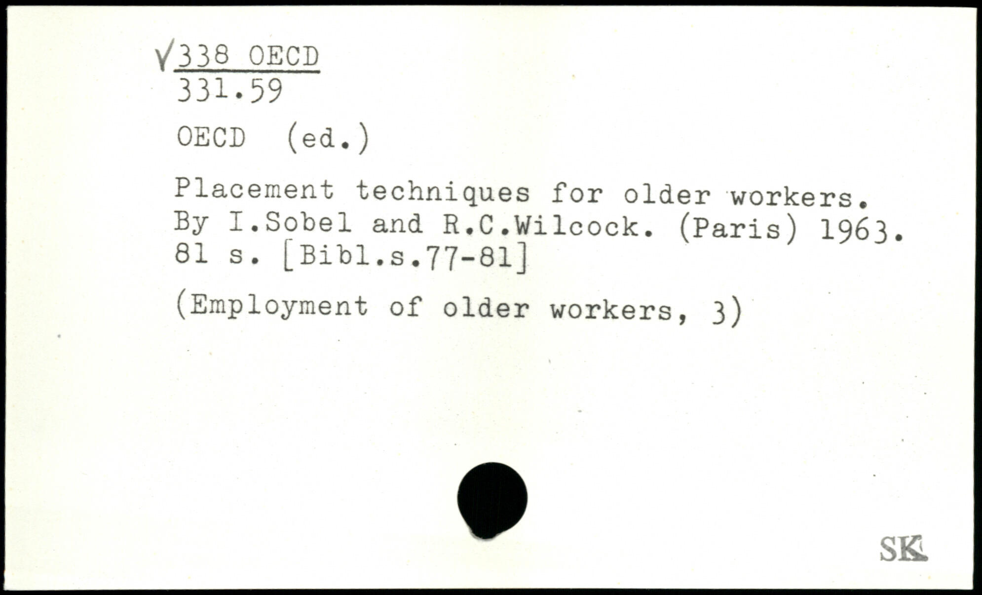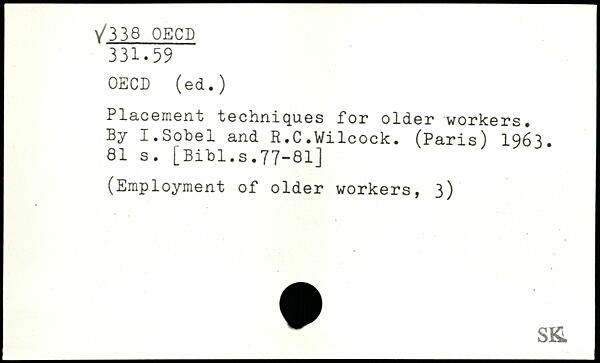 Placement techniques for older workers. By I.Sobel and R.C.Wilcock. (Paris) 1963.