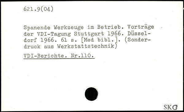 Spanende Werkzeuge im Betrieb. Vorträge der VDI-Tagung