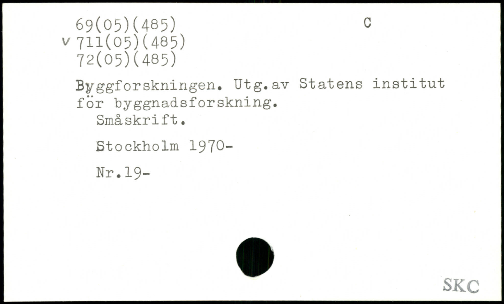 Byggforskningen. Utg.av Statens institut for byggnadsforskning. Småskrift.
