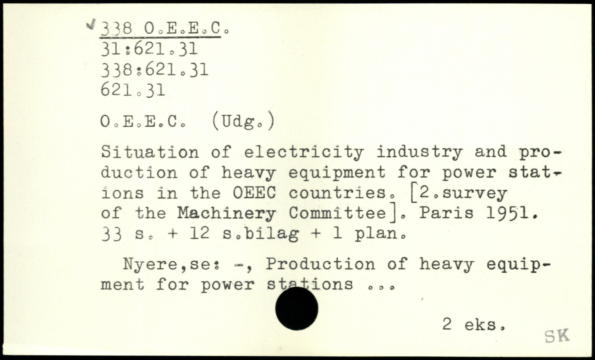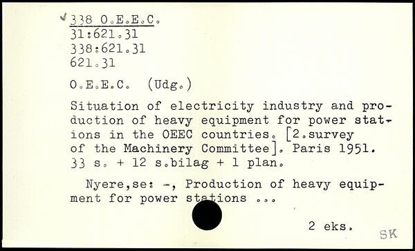 OoE.E.Co (üdgo) Situation of electricity industry and production of heavy equipment for power stations in the OEEC countries0 [2,survey of the Machinery Committee]
