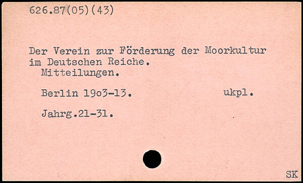 Der Verein zur Förderung der Moorkultur im Deutschen Reiche. Mitteilungen. Berlin 19o3-13. ukpl. Jahrg.21-31.