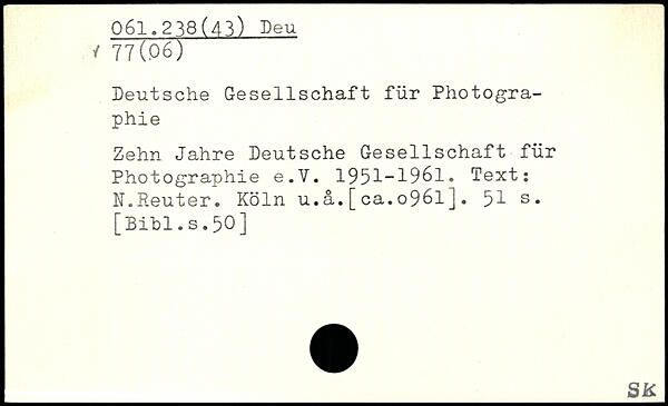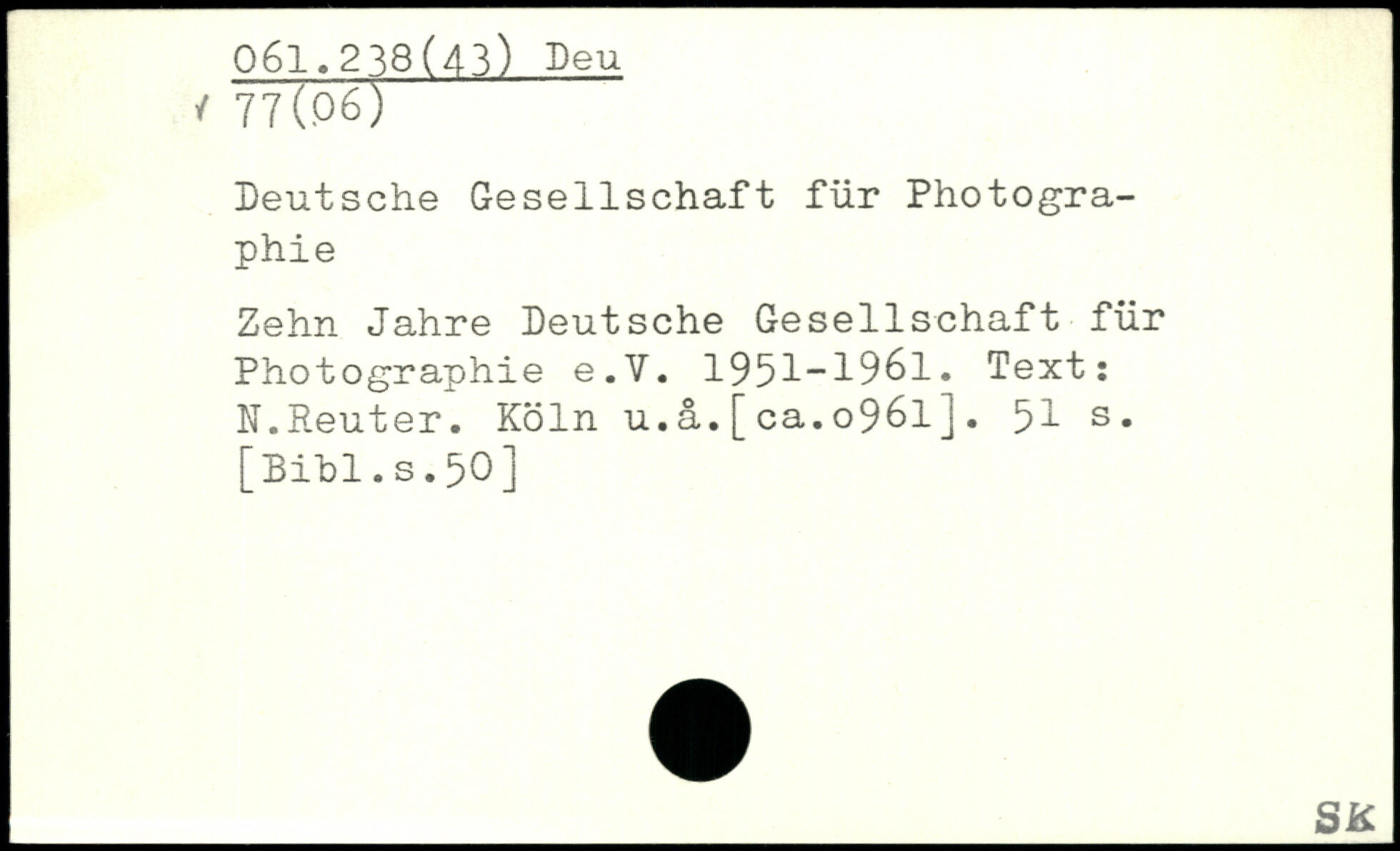 Deutsche Gesellschaft für Photographie Zehn Jahre Deutsche Gesellschaft für Photographie e.V. 1951-1961. Text: N.Reuter. Köln u.ä.[ca.o96l].