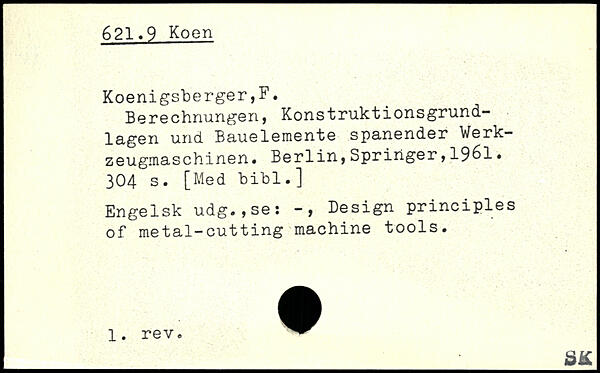 Berechnungen, Konstruktionsgrund-lagen und Bauelemente spanender Werkzeugmaschinen.