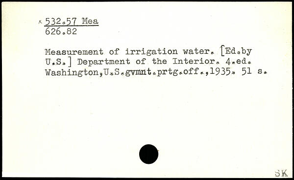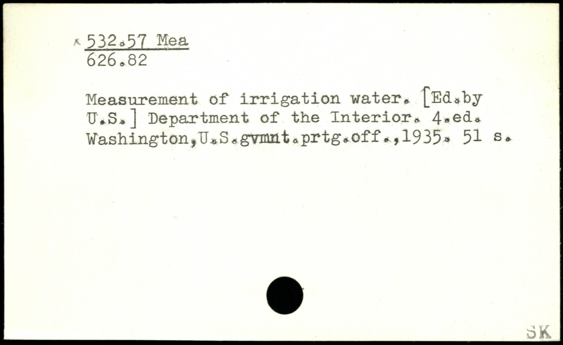 Measurement of irrigation water. [Edaby U.S.] Department of the Interior. Washington,TJ.S,gvimit.prtg.off.,1935.