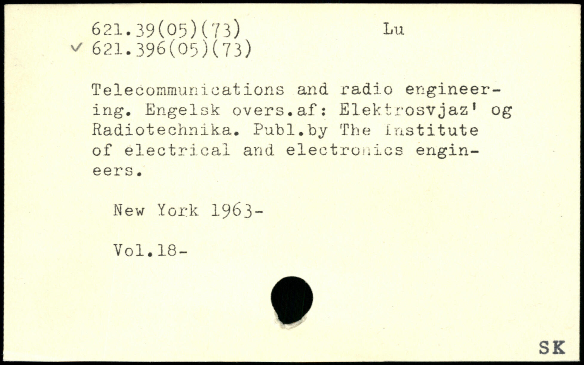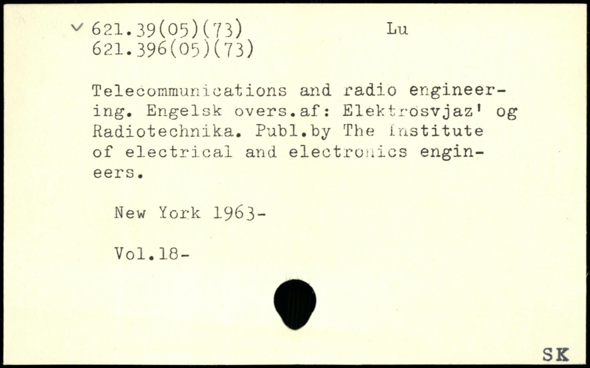 Telecommunications and radio engineering. Engelsk overs.af: Elektrosvjaz1 og Radiotechnika.