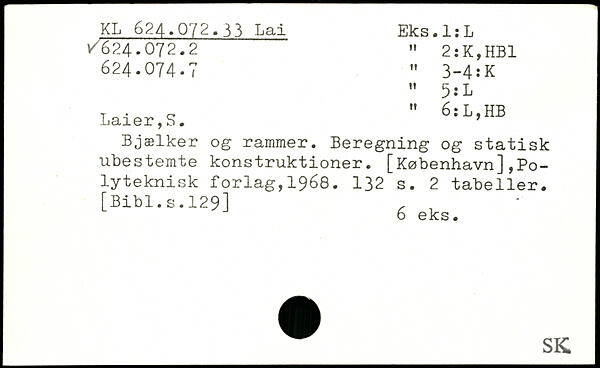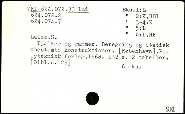Laier,S. " 6:L’HB Bjælker og rammer. Beregning og statisk ubestemte konstruktioner.