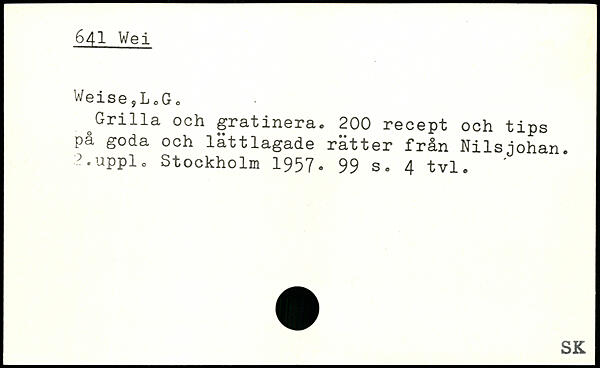 ^Grilla och gratinera. 200 recept och tips på goda och lättlagade rätter från Nilsjohan. J.uppl.