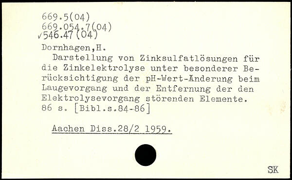 Darstellung von Zinksulfatlösungen für die Zinkelektrolyse unter besonderer Berücksichtigung der pH-Wert-lnderung beim Laugevorgang und der Entfernung der den Elektrolysevorgang störenden Elemente.