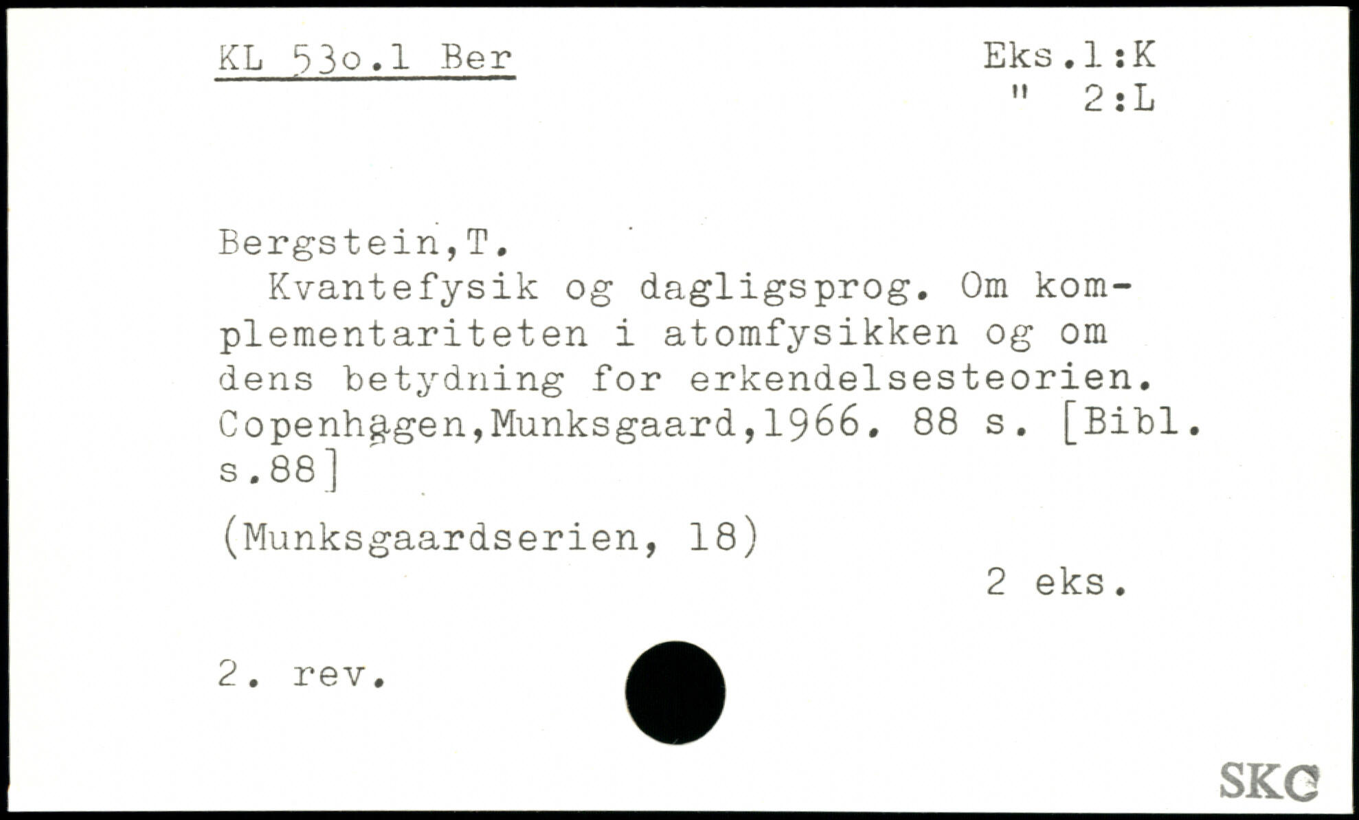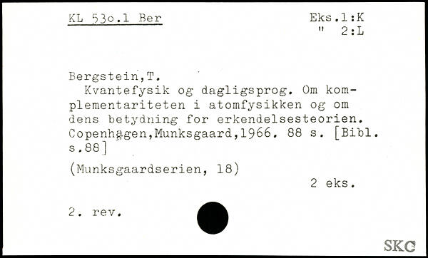 Kvantefysik og dagligsprog. Om komplementariteten i atomfysikken og om dens betydning for erkendelsesteorien.