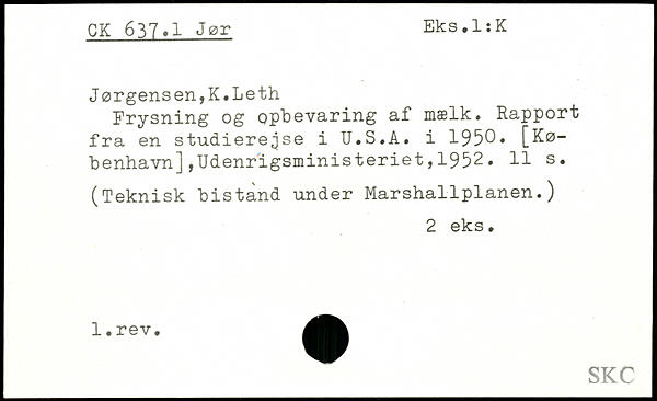 J ørgensen,K.Leth Frysning og opbevaring af mælk. Rapport fra en studierejse i U.S.A. i 1950. [København] ,Udenrigsminis teriet , 1952.