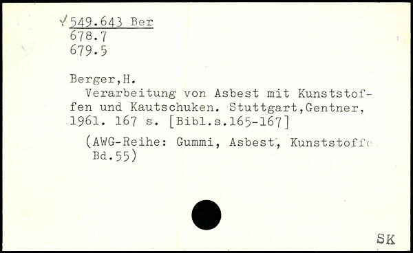 Verarbeitung von Asbest mit Kunststoffen und Kautschuken.