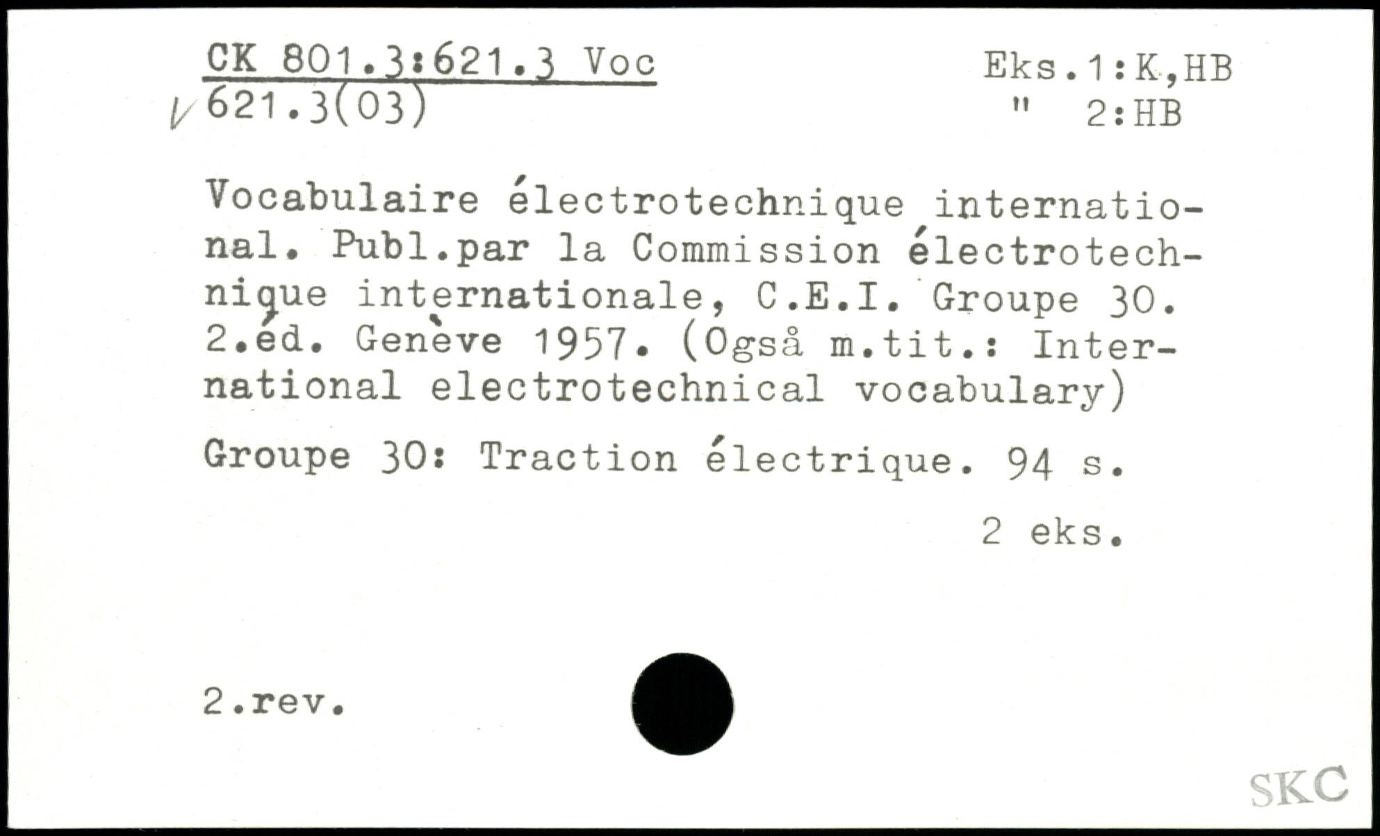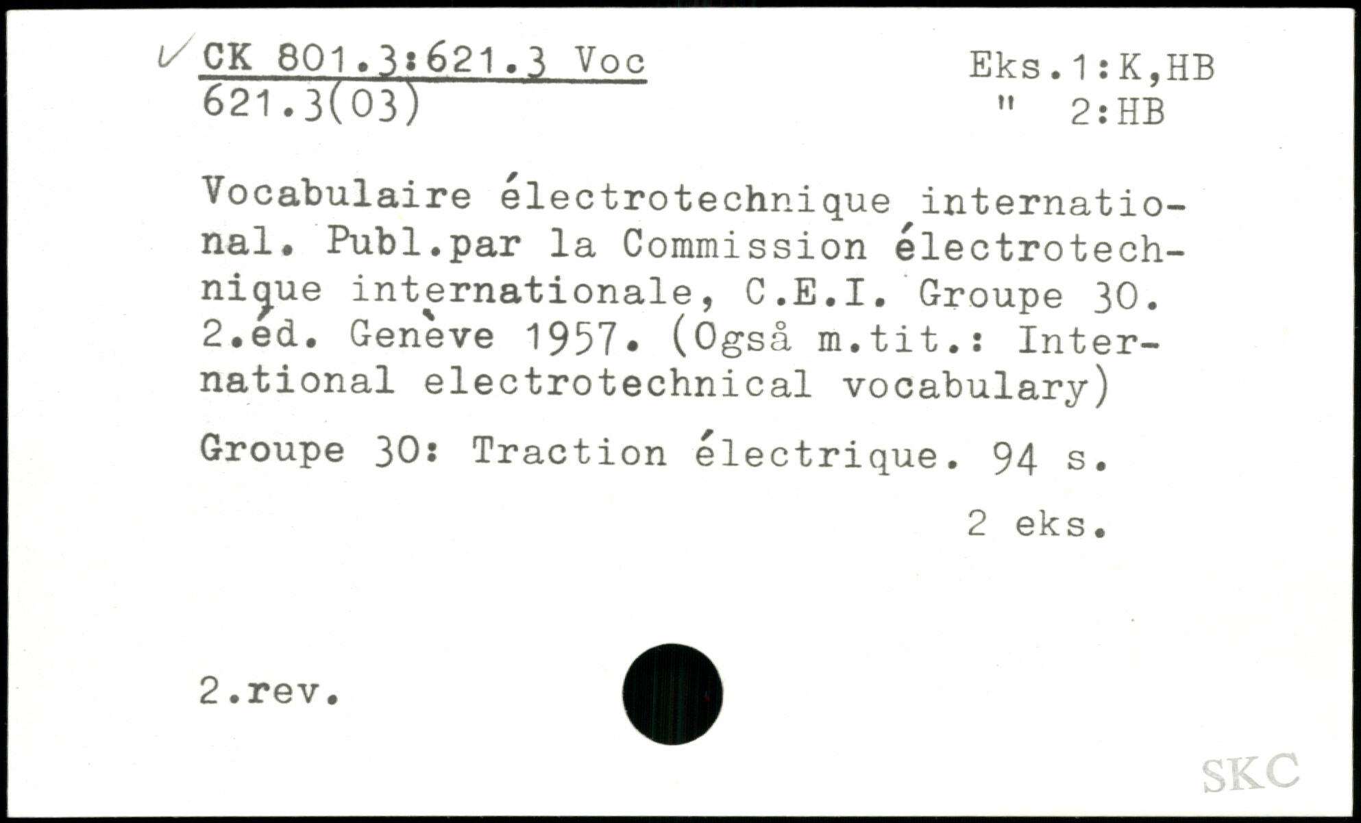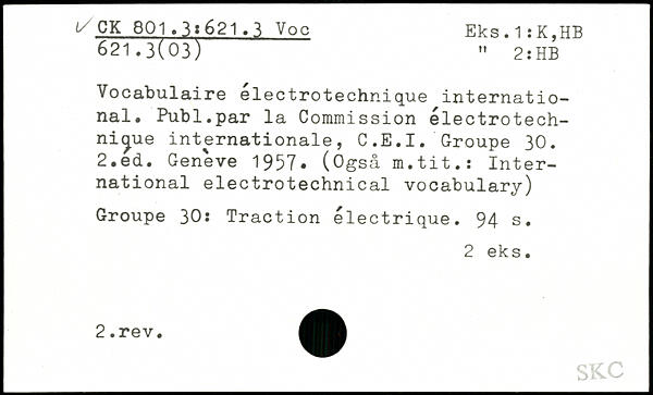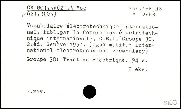 Vocabulaire electrotechnique international. Publ.par la Commission électrotech-ni^ue internationale, C.E.I. Groupe 30.